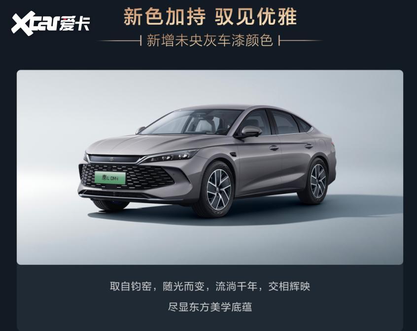 外观方面,新款秦L DM-i整体延续现款车型设计,依旧保留点阵式的熏黑格栅和两侧的龙须LED日行灯,辨识度瞬间拉满。此次焕新的最大视觉亮点,当属新增的“未央灰”车漆。灰色基底中透着天青釉的独特光泽,随着光线角度的变化,呈现出灵动多变的光影效果,尽显中式美学的深厚底蕴。