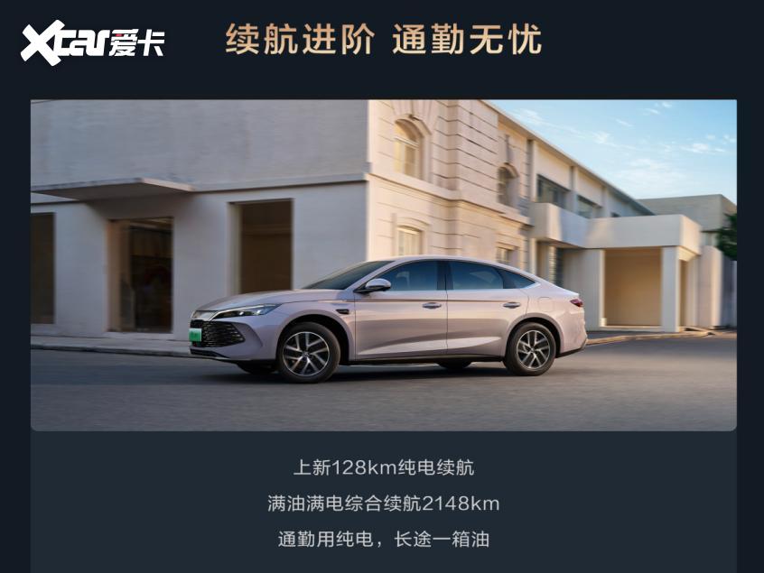 新车搭载第五代DM-i插混技术,以“超低油耗+超长续航”重塑市场认知。由1.5L发动机与电动机组成,其中发动机的上限功率为74千瓦,最大扭矩126牛米;电驱系统有120千瓦、160千瓦不一样的功率电机可供选择,纯电续航新车略有提升,达到128公里,NEDC百公里亏电油耗仅2.79L。此外,老车主可通过OTA升级,使80公里版本车型的NEDC亏电油耗逐步降低至2.6升/100公里。